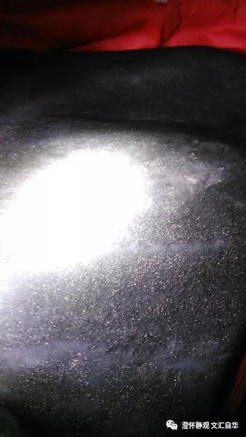 银沙遍布,当然有银沙也不能说明他就是叶城山料,有时候很多籽料也是银沙状的哦。但是从钉子一样的墨点猜测它身份可能就是山料喽,因为长时间的水流冲击出来的碳 墨等可是有化学和物理反应的,石墨的点子就不能那么不自然的痕迹喽。咱们还是看看下面的籽料的石墨打灯图片对比下喽——