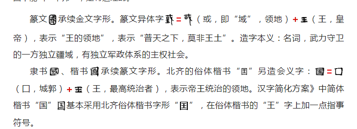 《説文解字》曰:國,邦也。从囗,从或。 如果说邦国这个词我们可以理解,但是为何“国”字会和或者的“或”字扯上关系呢?从现代字义看不太合理。那请看下图: