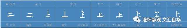 其次,到了金文时代,大家也发现参照物(长线)中的横线和曲线不容易标准化,就都写成横线了。但麻烦是容易混淆,所以为了更好的区分,加入了指示性的竖线,这样上下在应用层面算是真正的完成了符号区别。