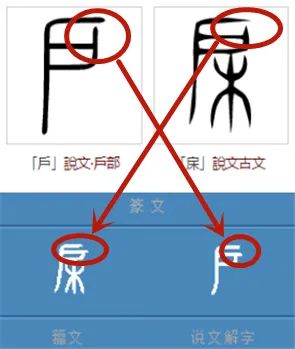 篆文形态依旧承袭甲骨文和金文,只是可能在不断手写传抄中,因右上部堵口不严,误将甲骨文“户”字右上部误传为开口形态,后来误版盛行以至于不再堵口,慢慢形成了今天的“户”字。