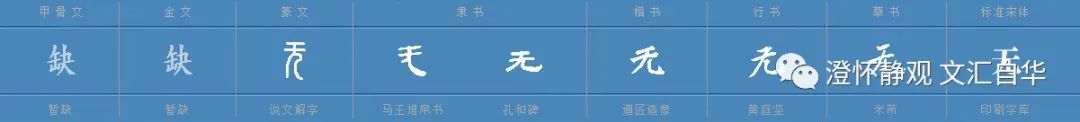 《説文解字》讲:无,亡也。从亡,無聲。无,奇字无,通于元者。王育说,天屈西北为无。有学者认为“无”通假“元”,有学者说这里的无是没有头发,认为“兀”是部分秃顶;“无”是全秃。