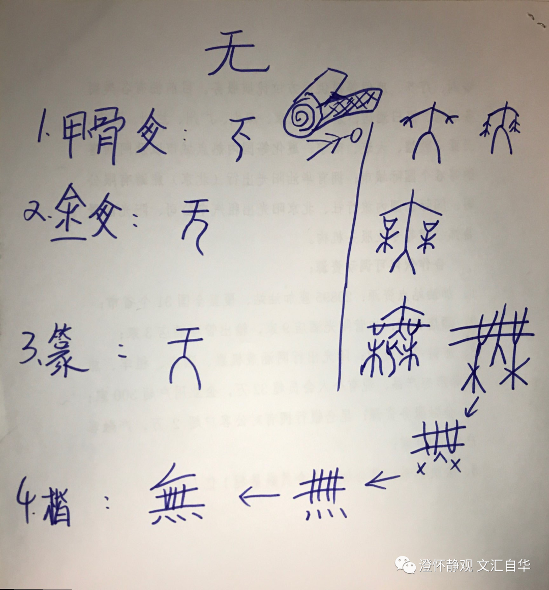 两个人架起尸体的形象和后来繁体字“無”形状较为相似,但现在对古文字只能是大胆猜想,结合出土文物小心求证。以上仅为一种大胆推测,抛砖引玉。
