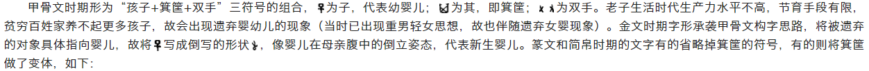 ,将襁褓婴儿双臂统一为一条横线,逐渐有了现在的字形。