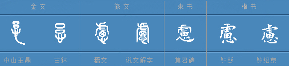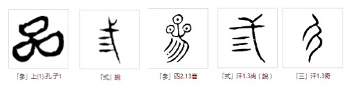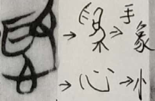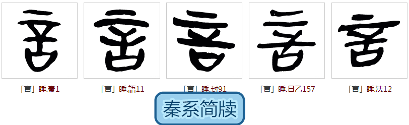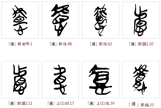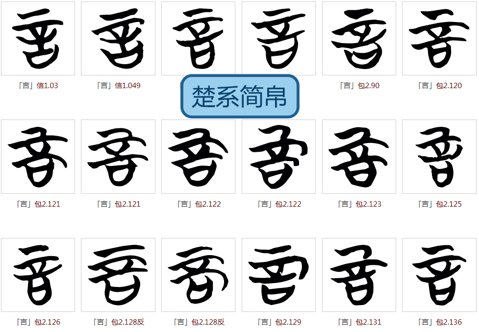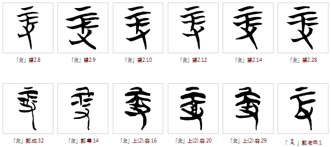 承续变形的甲骨文造字思路,传承中不断变形,如简帛时期有多种呈现形式: