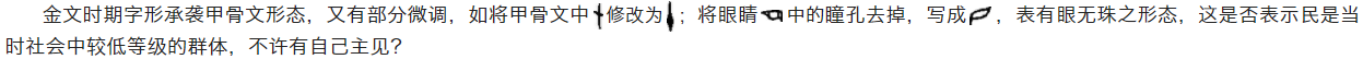 对于民字的解读,学术界有多种声音,有认为是“目+十”的组合,“十”代表众多;有认为“十”像一根权杖,表示对神圣的追求;也有认为十为锐器,以锐器刺瞎双眼,使奴隶或战俘无法逃跑;还有学者认为以锐器刺瞎眼可引申为民智未开、不辨真伪,从而指示民是一群没有甄别能力的乌合之众。回归到甲骨文时代,结合当时生产力和生产关系还原古人造字思考才是正解之道。