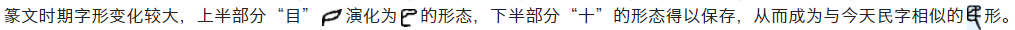简帛时期“民”之字形众多,上半部分均为有眼无珠形态,但下半部分的呈现形式多样,有的呈现甲骨文时期有刀柄形态,有的保持金文时期无柄形态,有的变形为带尾的形态。罗列部分以作参考: