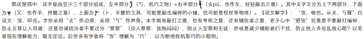 郭店老子甲中的“百”字,就像“二”(也有“一”)+“自”的组合,在此不妄猜想,暂将百字定为“说不完、道不尽的多”。