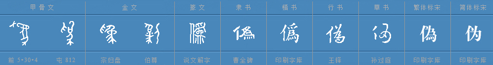 “伓”,郭店楚简为“伓”,帛书甲本为“负”(绝声弃知民利百负),帛书乙本(绝声弃知而民利百倍)和王弼本(绝圣弃知民利百倍)为“倍”。几个版本对该字解释不尽相同,若以郭店楚简字形看,“伓”字左半部分为“人”,右半部分则更像一个现代字“不+一”。
