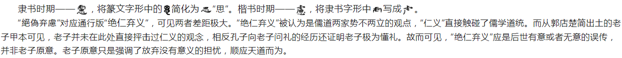 若按王弼本解释,“倍”字应如上图中手写部分,看似和郭店楚简形态并不一致。汉典中字“伓”同“伾”;通“背”(bèi);同“不”。“伓”有背负之义,帛书甲本可能因取其中的“背负”之义而择“负”;那帛书乙本取的可能是“背”的音,将“倍”通假,解释为老百姓得到百倍之利似乎也说得过去,可能也就延续了下来。但老子之意,是否取“背负”之意?还是理解为利于老百姓承担和背负更多的责任,利于社会长治久安?暂不能确定。