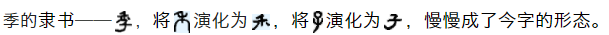 ,承续甲骨文、金文字形。《说文解字》曰:“季,少称也”,表示对同辈中年纪最轻者的称呼。部分简帛字形列举如下: