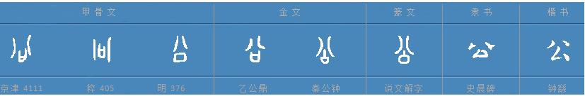 (私)的情况发生,以强调与“私”相反。故所谓公私分明中的“公私”二字,至少在甲骨文时期,并非以“厶”字为区别。公私二字流变如下:公: