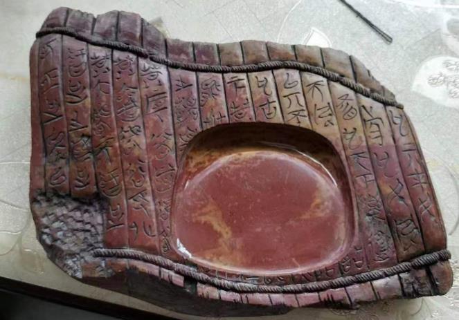 博览会期间举办了2023山东工艺美术博览会暨“山东手造”精品展“荷花杯”山东省工艺美术设计创新大赛,由专家委员会进行现场评审。顽石斋 本次携三套作品参赛,其中由孙逸老师设计,王发刚老师制作的《郭店楚简·老子 红丝砚雕集》,思想精深、艺术精湛、制作精良,评委专家一致认为其是国学创新表达的新探索和好方式,是中华文字传承和发展的好创新和新实践,既紧扣时代脉搏,又彰显传统文化风采,以独特的创新意识在本届大赛中脱颖而出,荣获本届“荷花杯”山东省工艺美术设计创新大赛银奖。作品的创新性主要体现在三个方面:(1)素材方面。砚雕集选取老子思想为切入点,以《郭店楚墓》这个现发掘的最早版本为蓝本,弘扬了中华优秀传统文化;(2)用料方面。砚雕集收集青州和临朐各个特色坑口红丝石为原料,旨在打造一套红丝砚石材的大百科全书,是一套集大成思维的砚雕集;(3)雕刻方面。砚雕集利用独特的古文字雕刻工艺,将《郭店楚简·老子》共71枚,近2000字的楚系篆文雕刻于红丝砚上,文字跃然纸上、灵动传神,体现了大国工匠的技巧和匠心。