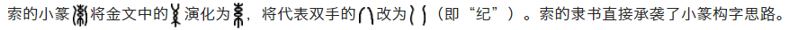 索的秦系简牍字形比较趋近于今日楷体的索字,双手和屮的部分已经连接为一体,形成了秃宝盖(冖)结构,导致现代人难以理解古人造字时的本意。部分字形如下: