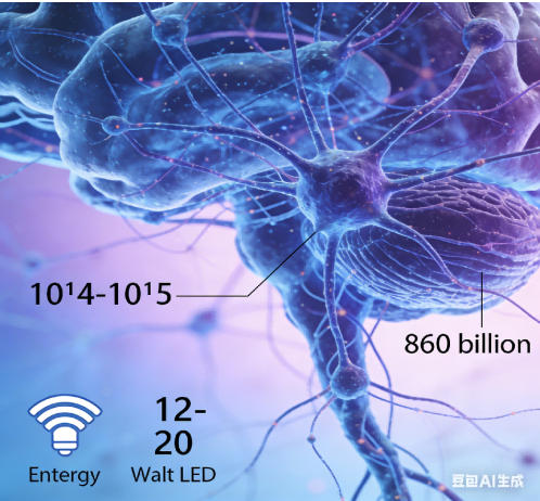 100万亿到1000万亿个连接节点)、860亿个神经元,却只需要12—20瓦的能耗。当晚上看书时,大脑的功耗可能还不如头顶的床头灯。